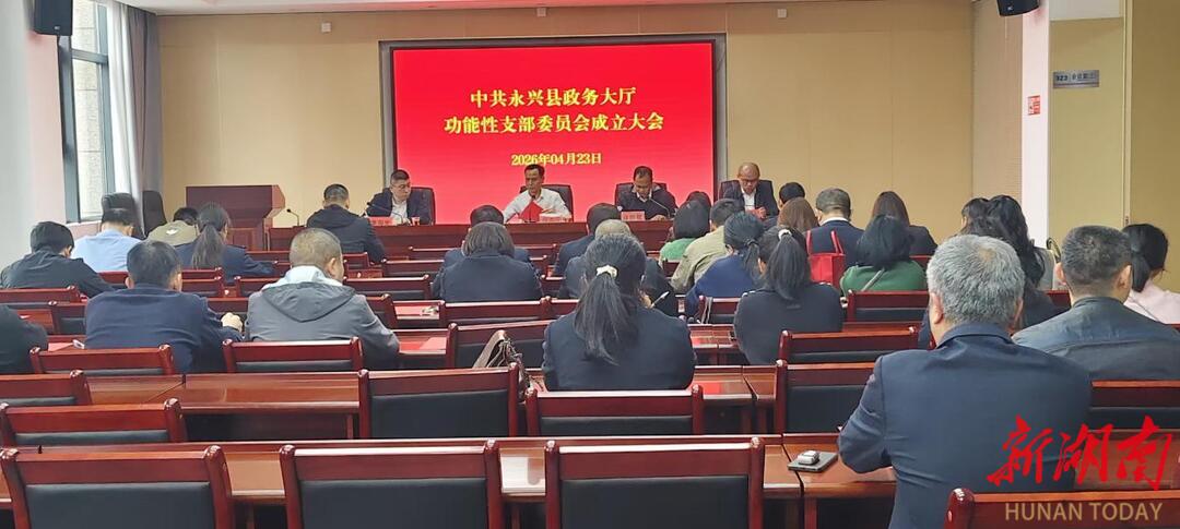 新湖南客户端4月28日讯(通讯员 李艳红)近日,永兴县政务服务中心召开功能性党支部成立大会,50名来自不同单位的窗口党员有了共同的“家”。这个不转组织关系、专为大厅党员搭建的党支部,开启了“组织生活就地过、党员作用在一线”的党建新探索。