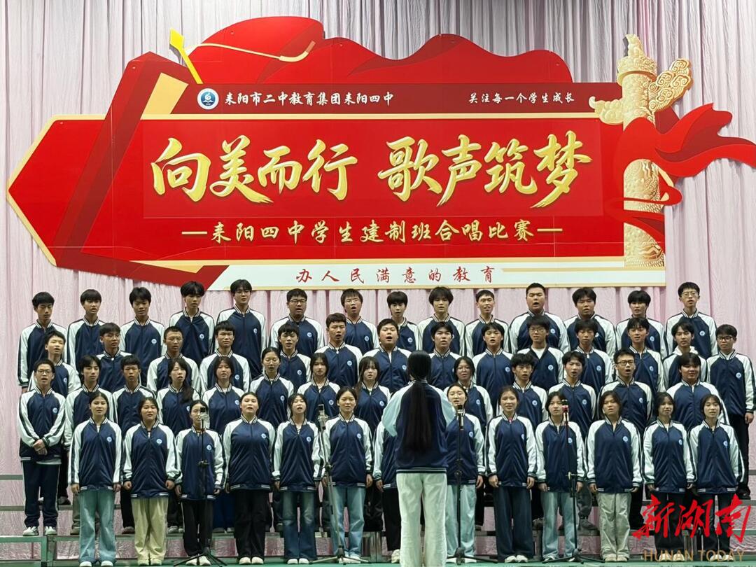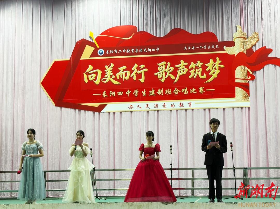 新湖南客户端4月28日讯(通讯员 刘利峰 摄影 梁娟)4月27日下午,耒阳市二中教育集团耒阳四中2026年建制班合唱比赛在学校礼堂举行。本次活动旨在通过高雅艺术的熏陶,提升学生的审美素养,厚植家国情怀,是该校落实立德树人根本任务、推进“五育并举”的又一重要实践。