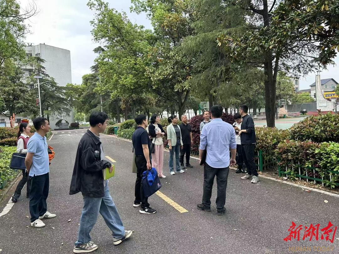 (调研组在大通湖区一中实地查看场馆建设情况)