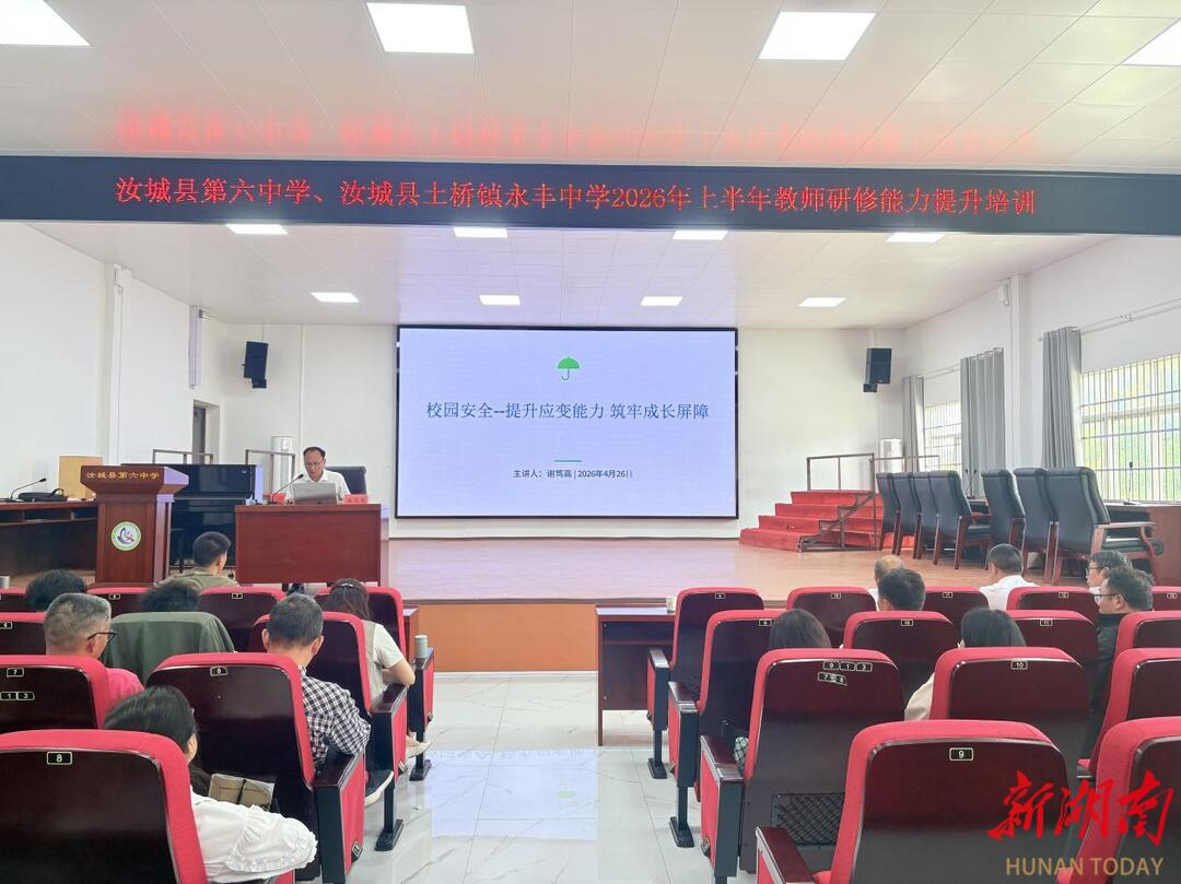 新湖南客户端4月28日讯(通讯员 朱晓楚 范志敏 何兰养)充电赋能,共促成长。4月26日,汝城县第六中学、土桥镇永丰中学联合举办2026年上半年第一次教师研修能力提升培训。本次培训采用专题讲座、案例剖析、互动研讨相结合的方式,内容精准、务实高效,为两校教师带来一场专业赋能的“必修课”。
