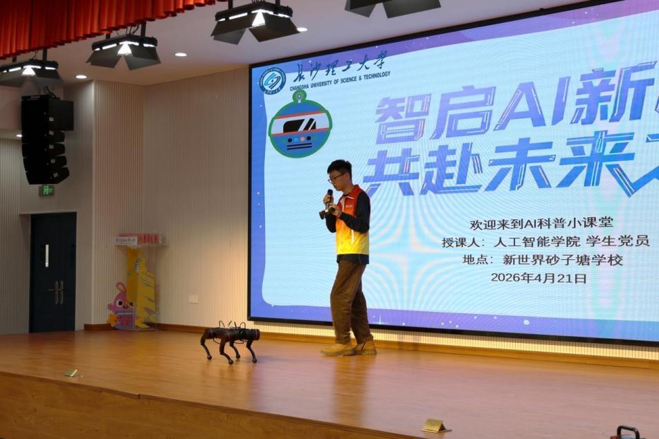近日,长沙砂子塘新世界小学的教室里欢呼声此起彼伏——来自长沙理工大学人工智能学院AI科普团的29名党员、团员志愿者,为135名小学生带来了一场“AI奇妙之旅”。