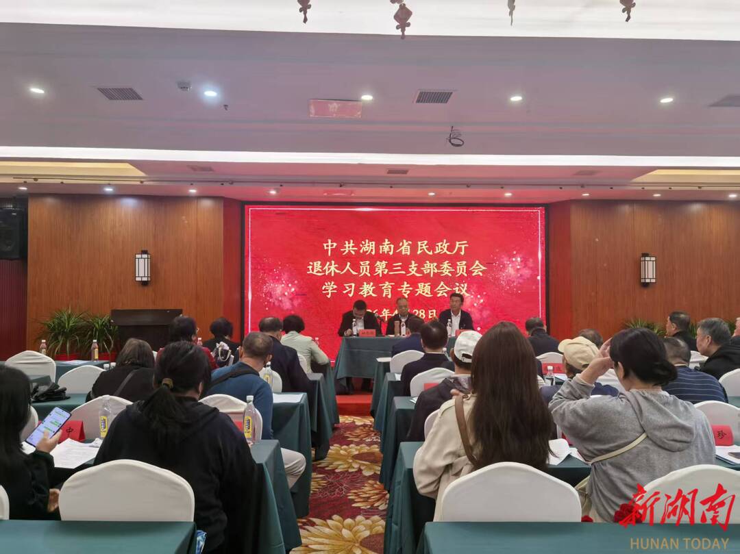 随后,省民政厅退休三支部学习教育专题会议在天心区城南路街道工农桥社区会议室举行。党支部书记李劲夫组织大家集中学习了省委组织部、省直机关工委、省委老干部局、省委离退休干部工委《关于加强和改进退休干部党员教育管理监督的若干措施》等文件,逐字逐句领会精神实质。天心区民政局局长杜志强以践行民政为民初心,谱写天心民生新篇为题,分享了树立和践行正确政绩观的经验与感悟。
