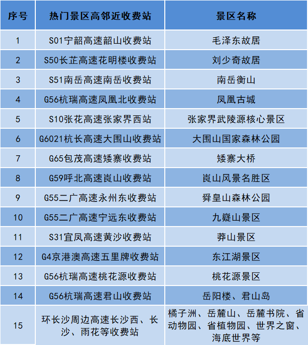 提示五 热门景区周边高速公路情况
