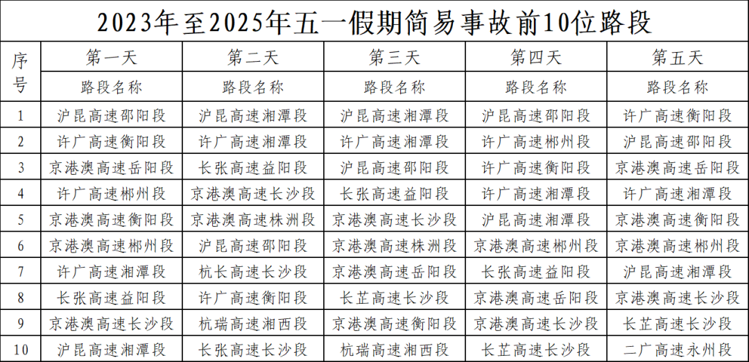 (五)2023-2025年五一假期事故多发路段