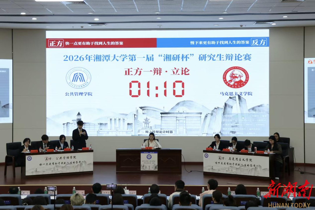 湖南日报·新湖南客户端4月28日讯(通讯员 龚玉萱 刘禹鑫 丁琪)辩以明思,论以启智。 近日,湘潭大学第一届“湘研杯”研究生辩论赛决赛举办。