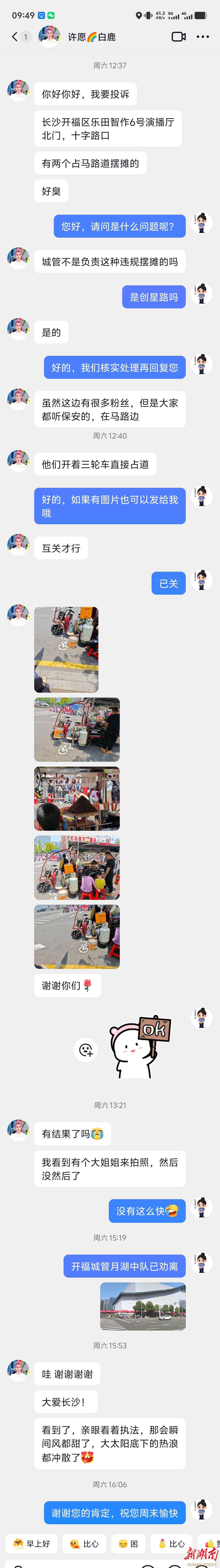 今年4月,有市民在小红书反映开福区一处井盖周边塌陷,存在安全隐患。客服“小良”即刻留言回应:“收到,马上核实处理!”并迅速通过调度群交办至辖区城管部门,问题当天整改到位。市民专程拍照反馈:“长沙城管像小蜜蜂一样勤劳,为你点赞!”