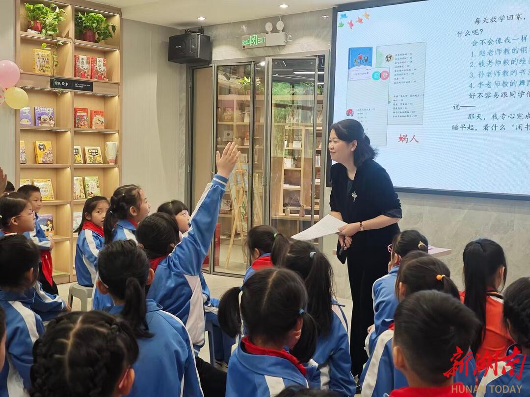 县新华书店内,阅读氛围同样浓厚。二年级师生在骆娟老师带领下品读儿童故事,分享感悟、交流心声,在文字里汲取温暖与力量。三年级则开展《小故事大道理》主题阅读,雷海霞老师带来沉浸式阅读示范课,传授寓言阅读方法;随后的寓言知识竞猜趣味十足,孩子们踊跃抢答,在欢乐中巩固知识、激发热情。
