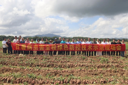在广东汕尾,团队集成脱毒健康种苗、栽前消毒、药肥一体化等全程绿色防控技术,对甘薯小象甲等“一虫两病”综合防效高达97.8%。当地百亩“心香”甘薯亩产达到2000到2500公斤,亩产值破万元,还没采收就被全部订光。