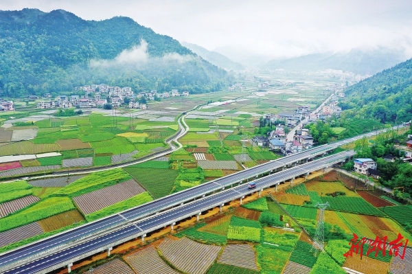 4月27日,龙山县茨岩塘镇云雾缭绕,民居错落有致,田野色彩斑斓,高速和国道穿镇而过。这片红色热土,如今依托烤烟、蔬菜、百合等特色产业驱动乡村振兴,新农村建设成效显著,呈现出一幅产业兴旺、安居乐业的美丽乡村画卷。曾祥辉 摄(湖南图片库)