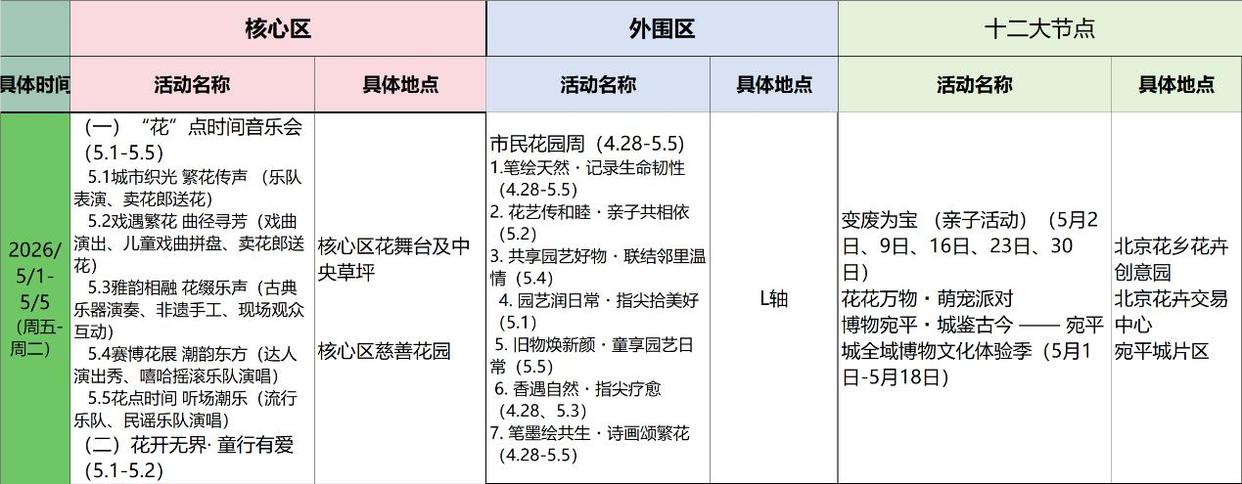 展期内还将推出20余场特色主题活动,覆盖不同年龄层需求:丽泽国际消费季将携手知名IP打造“花香伴书香”世界文学嘉年华,实现文字与自然的双向治愈;“乐学公园”成果展、木屋大赛、520浪漫告白、花间时间音乐会等活动将陆续登场,全方位丰富市民游玩体验。