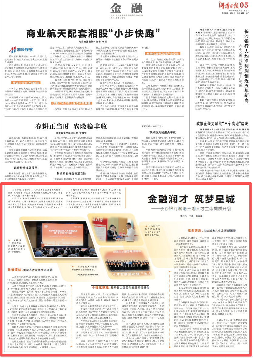 功以才成,业由才广。人才是湖南高质量发展的第一资源,更是湖南“十五五”规划落地见效的关键支撑。而金融,正是连接二者的核心纽带。