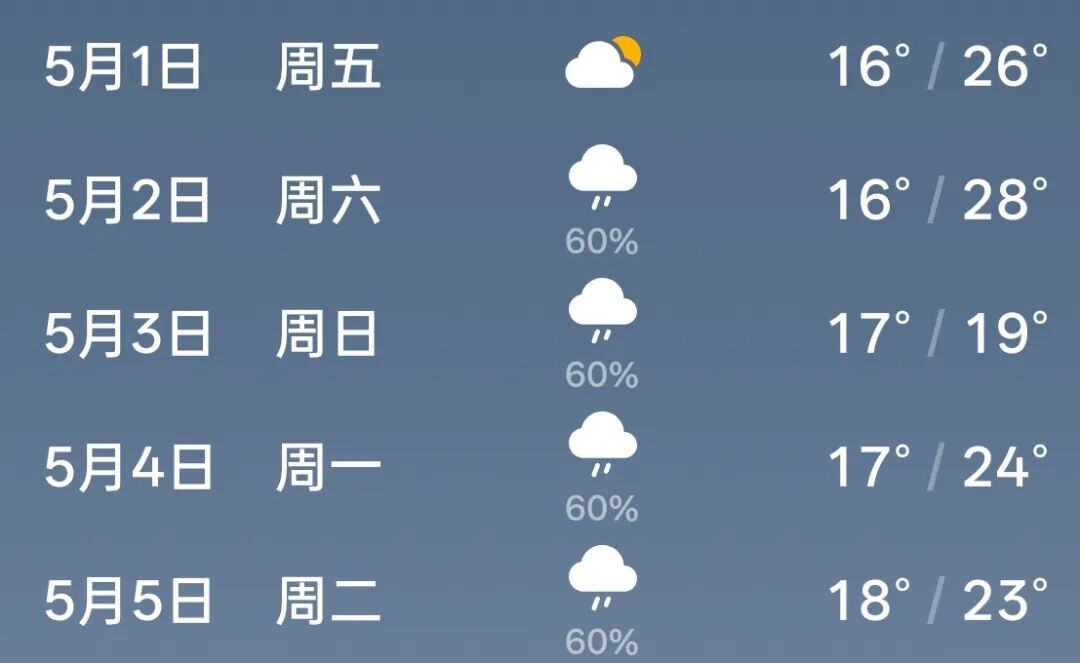 “五一”假期期间,新化天气总体多云转雨。请根据个人需求和身体状况适当增减衣物,注意防晒和防雨。