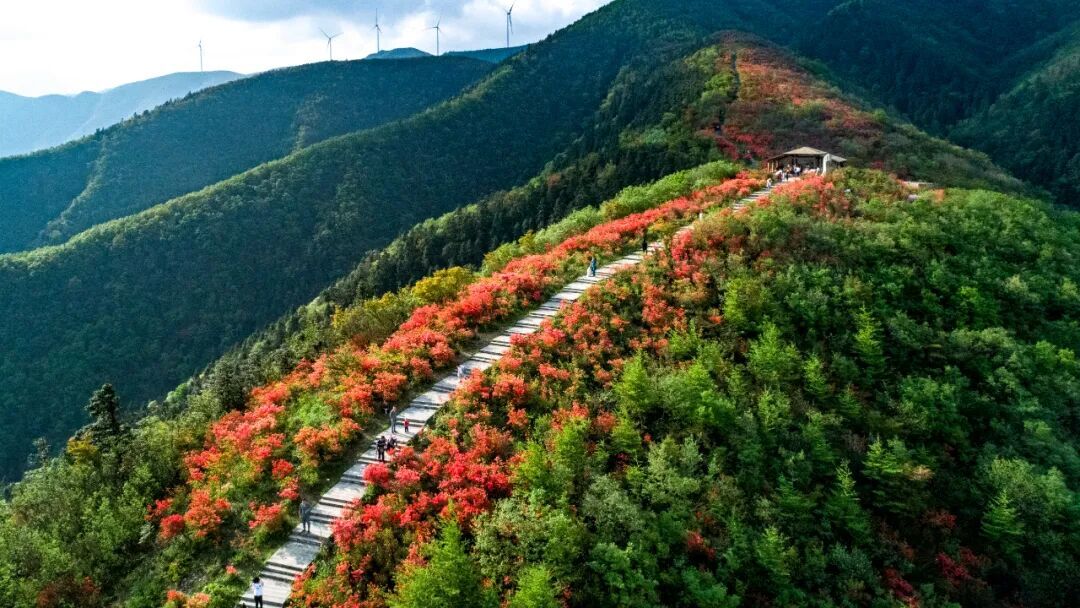 【大熊山】——杜鹃盛开,犹如十里锦绣倾泻山峦,万树红霞热烈绽放,漫山遍野的杜鹃花将雄浑的大熊山装点得如诗如画,分外妖娆。境内有蚩尤文化体验区、春姬峡谷观光区、大熊峰登山揽胜区、川岩江原始探险区、生态养生度假区、森林生态保护区六大功能区。享有“生态名山、蚩尤祖山、宗教神山”的美誉。