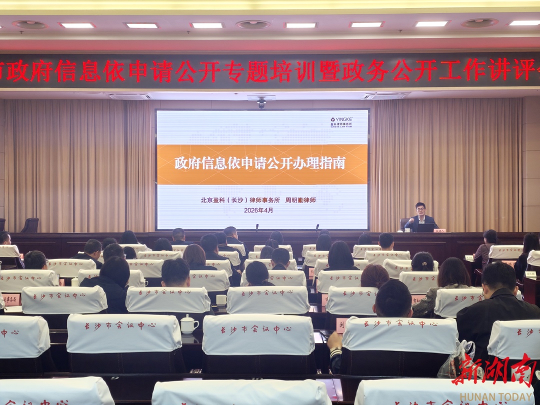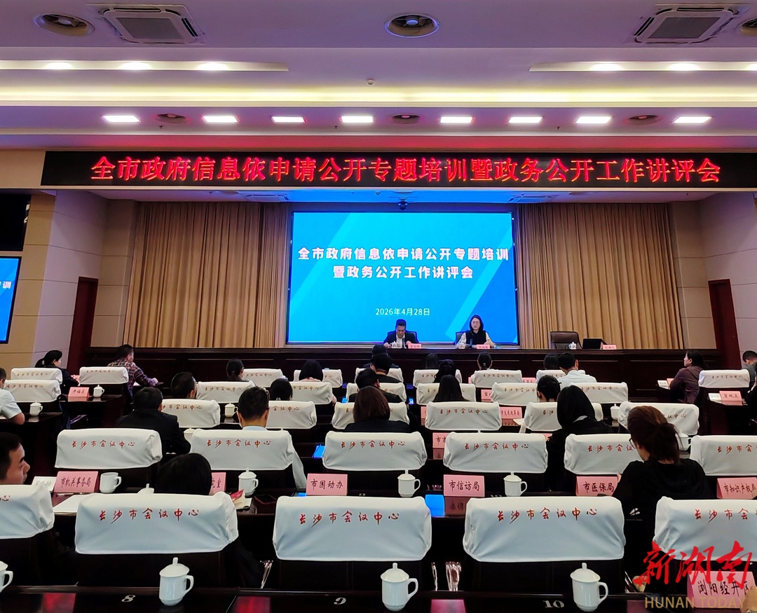 湖南日报·新湖南客户端4月29日讯(通讯员 曹明)为落实党中央、国务院和省委、省政府关于做好新时代政务公开工作的部署要求,进一步提升全市政务公开和政府信息依申请公开工作规范化、法治化水平,4月28日,长沙市行政审批服务局举办2026年全市政府信息依申请公开专题培训暨政务公开工作讲评会。湖南湘江新区管委会、各区县(市)政府、各园区管委会、市直各单位政务公开工作负责人共约90人参加培训。