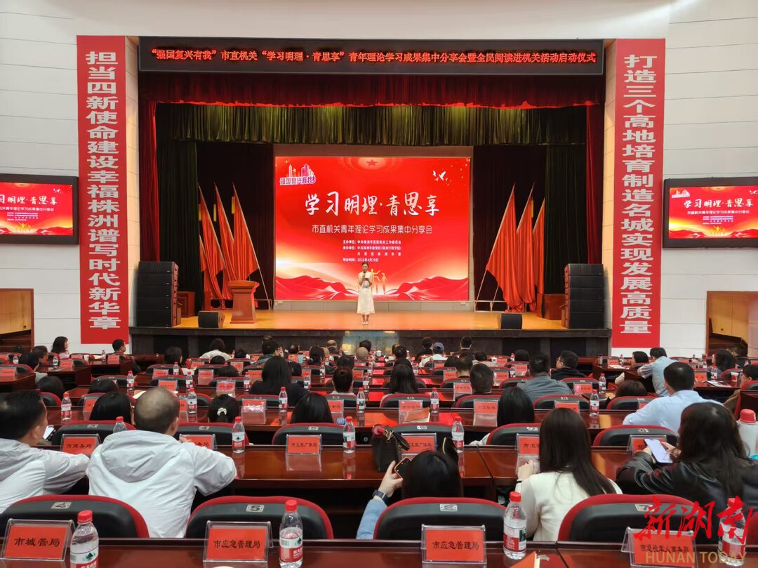 湖南日报·新湖南客户端4月29日讯(记者 张永琼 通讯员 尹红忠)4月29日上午,株洲市委党校综合楼大礼堂内青春激荡、书香弥漫。由市直属机关工作委员会主办,市委党校、共青团株洲市委承办的,“强国复兴有我”市直机关“学习明理·青思享”青年理论学习成果集中分享会暨“全民阅读进机关”活动启动仪式在此举行。市委宣传部等单位相关负责人及市直机关青年代表参加。