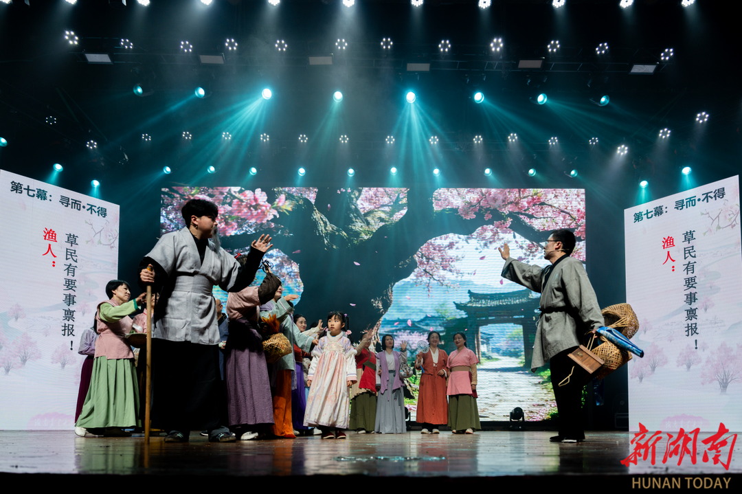 一位农学院学生感慨道:“以前只在课本里读过《桃花源记》,今天看到它‘活’在舞台上,我真正理解了陶渊明笔下的追寻与失落,也更加珍惜我们身边的‘湘农新桃源’。”