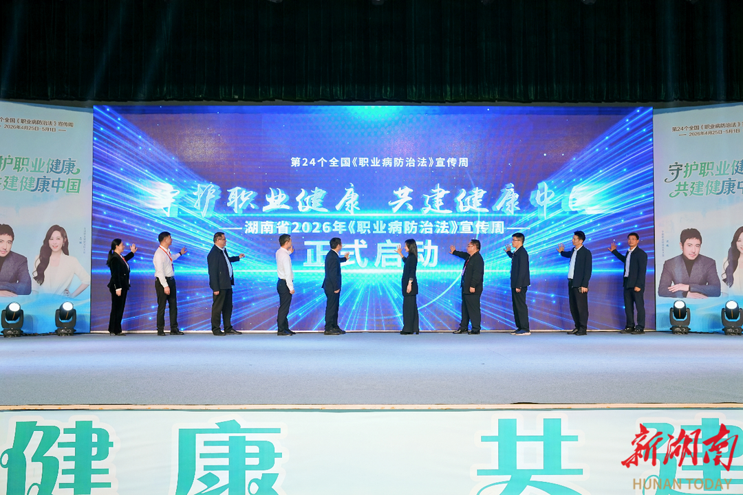 新湖南客户端4月29日讯(通讯员 张屹平 黄桂山)关爱劳动者,健康伴同行。4月28日,湖南省2026年《职业病防治法》宣传周启动仪式落地郴州,围绕“守护职业健康,共建健康中国”主题,开启全国第24个《职业病防治法》宣传周系列科普宣传活动。