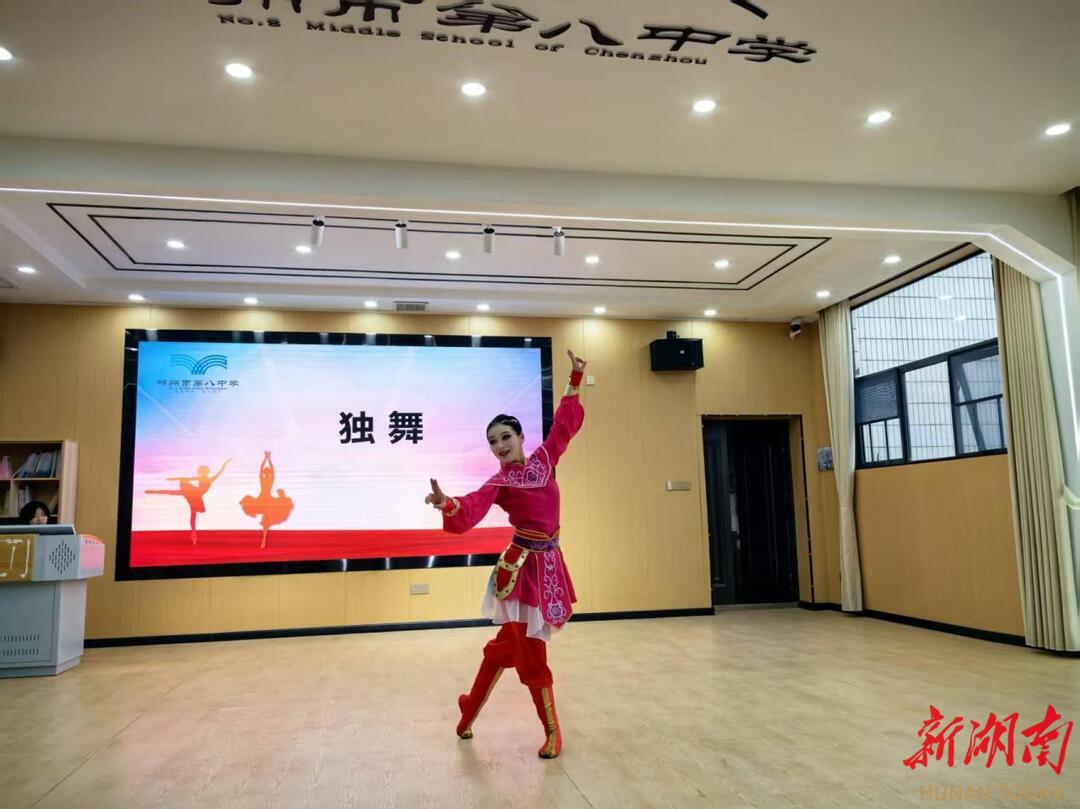 新湖南客户端4月29日讯(通讯员 龙春瑾 陈丽萍)为积极响应国家美育工作部署,全面落实素质教育要求,丰富校园文化生活,日前,郴州市第八中学举办以“绽放艺术风采 激发强国力量”为主题的第四届校园才艺大赛暨三独比赛决赛。全校学子以艺载梦、以美育人,用精彩表演展现青春风采,为校园文化注入鲜活活力。