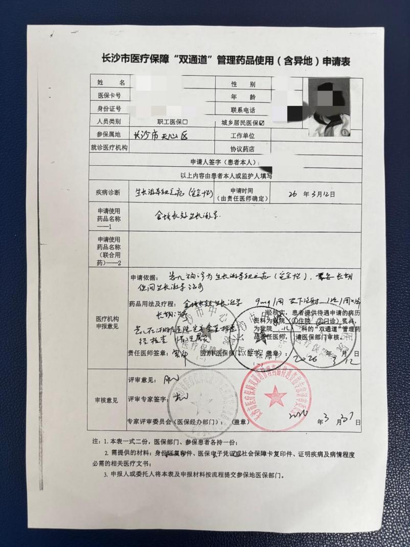 三、真实案例|长沙市中心医院首例生长激素医保报销已成功获批