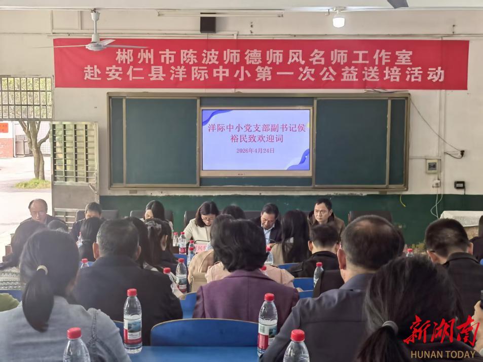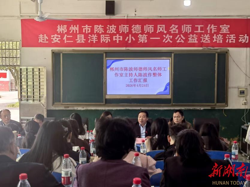 新湖南客户端4月29日讯(通讯员 陈波)近日,郴州市陈波师德师风名师工作室赴安仁县洋际中心小学第一次公益送培活动顺利举行。在安仁县教育局、安仁县教师发展中心的精心安排下,工作室主持人陈波率领送培团队,联动安仁县思源实验学校、安仁县洋际中心小学、安仁县三完小三校教师,围绕“深耕师德涵养,赋能乡村教育”的主题,通过专题引领、仪式共建、典型引路、精准调研、机制部署五大模块,系统推进师德建设专业支持向乡村学校深度延伸。