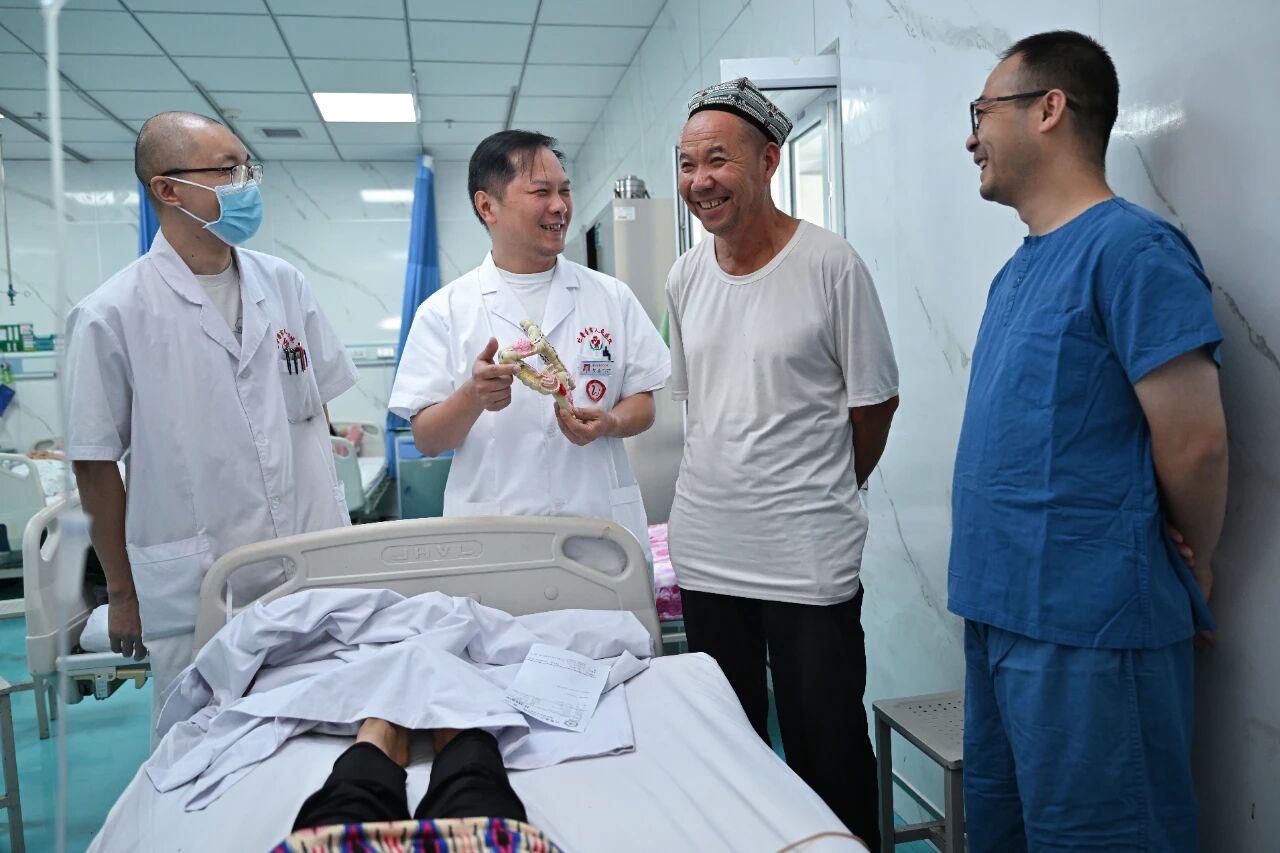 他聚焦老年髋部骨折的规范化诊疗与早期康复,积极推广加速康复外科(ERAS)理念,优化个体化手术方案,大幅缩短患者康复周期,降低术后并发症风险。他同步常态化开展理论教学与手术带教,手把手传授核心诊疗技术,全面提升当地骨科团队老年髋部骨折规范化诊疗与全周期管理能力,为边疆老年患者筑牢健康防线。