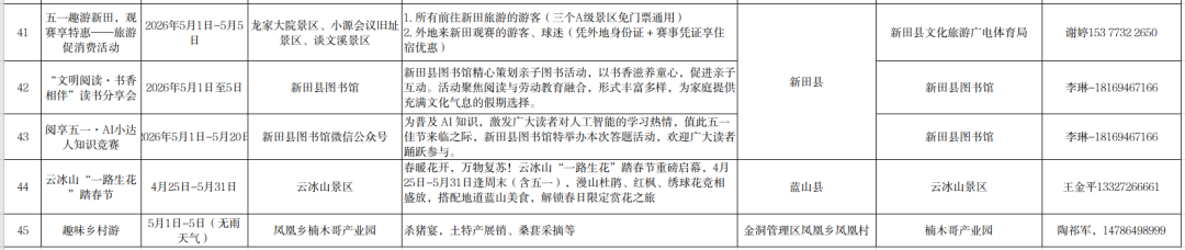 内容:1. 所有前往新田旅游的游客三个A级景区免门票通用