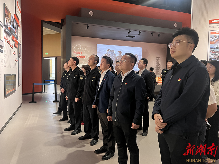 4月28日,中建三局湖师大宿舍楼、中南大学智信楼、公教楼项目联合党支部与湖南湘江新区行政执法局机关第五党支部共同开展党建联建主题活动,40余名党员参加。活动中,党员们走进中南大学校史馆,聆听校史沿革,感悟学府深厚的文化底蕴与科研成就。在集中学习研讨中,与会党员深入学习党的二十届四中全会精神,并结合各自工作岗位交流了学习心得与体会。 胡思萌 摄(湖南图片库)