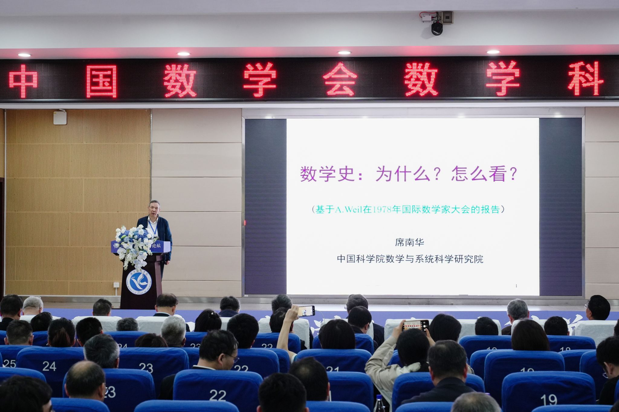 席南华院士代表学会致辞。首先他对与会嘉宾表示欢迎,并向关心支持数学事业的各界人士、承办及协办单位致谢。他指出,数学对于日常生活和社会发展都至关重要,数学科普的真正目的是全方位地向大众普及数学,让大家对数学拥有更深刻的认知,同时了解数学家这个群体,明白数学、数学家为社会发展作出的贡献,进而热爱数学。