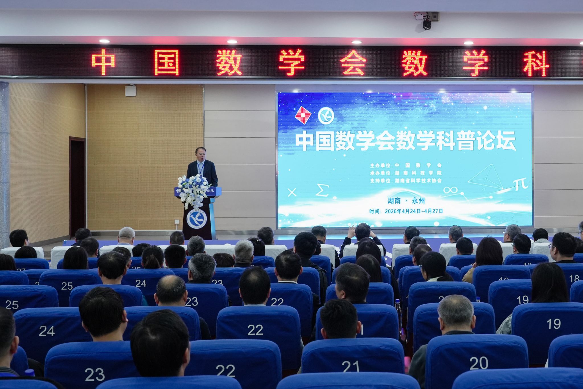 4月24日至27日,中国数学会数学科普论坛在永州市举行。本次论坛由中国数学会主办、湖南科技学院承办、湖南省科学技术协会支持。中国科学院院士、特邀嘉宾、各高校与科研单位专家学者、中小学科普工作者、永州市中小学生以及数学爱好者等近3000人,分别通过主会场及各中学分会场参加本次论坛。