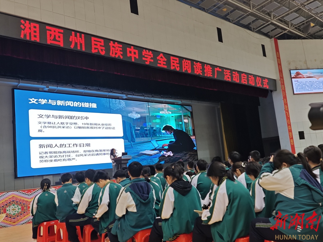 湖南日报·新湖南客户端4月29日讯(全媒体记者 郭朵朵 通讯员 谢晶)今晚,湘西土家族苗族自治州民族中学勇智馆内灯火璀璨、氛围热烈,“相‘阅’湘西 阅见世界”全民阅读推广活动启动仪式举行。2000多名师生齐聚一堂,共赴一场浸润心灵的阅读之约。