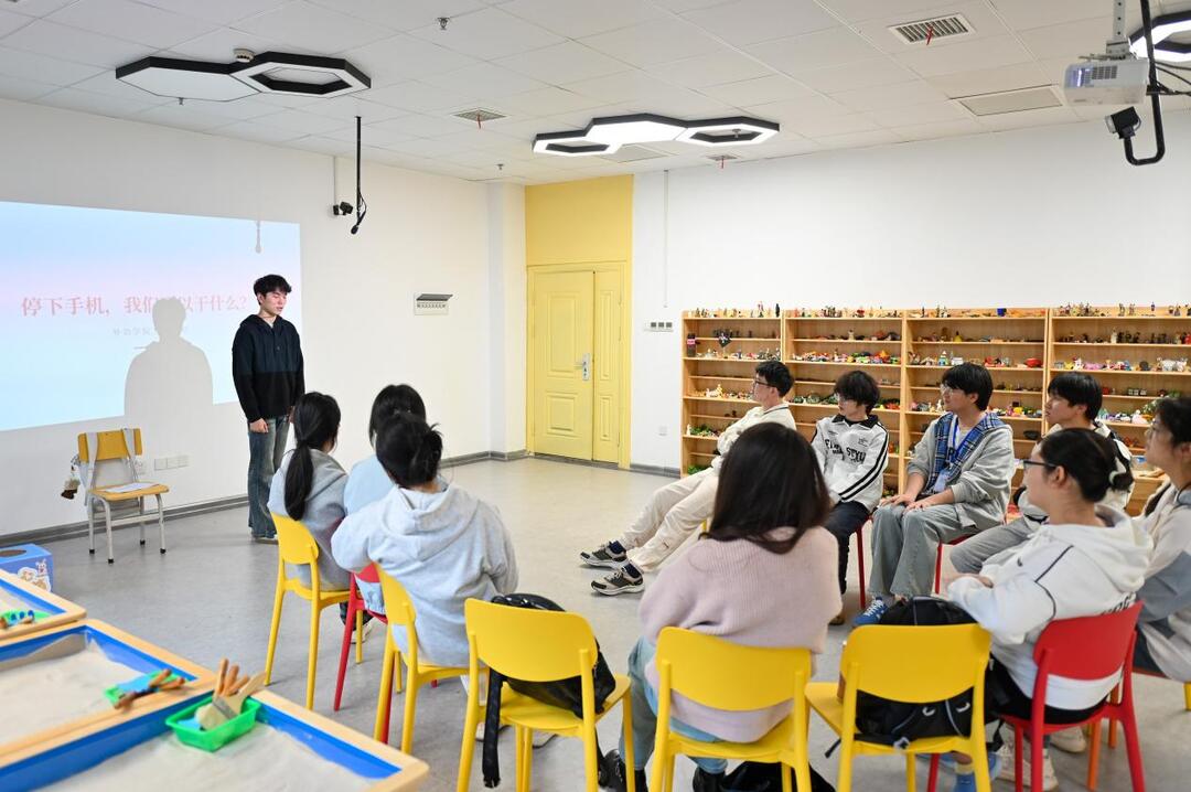 圆桌畅聊环节围绕三个暖心话题展开:“做什么事会完全忘记看手机”“哪些快乐是手机给不了的”“一下午不用手机最想和大家一起做什么”。同学们自愿分享、畅所欲言,讲述运动、阅读、陪伴亲友、手工创作等带来的专注与满足,真切体会到现实互动、自然体验、情感联结所带来的不可替代的幸福感。