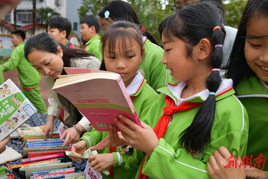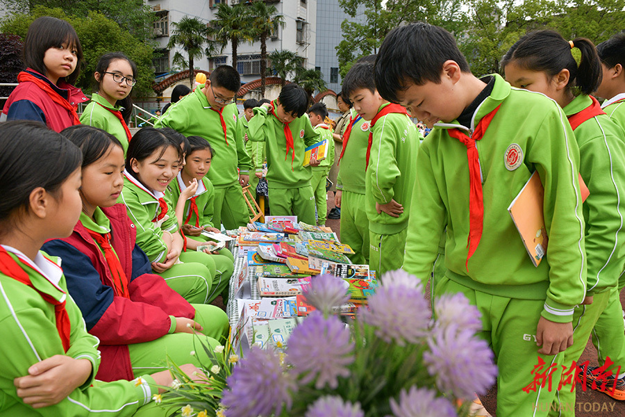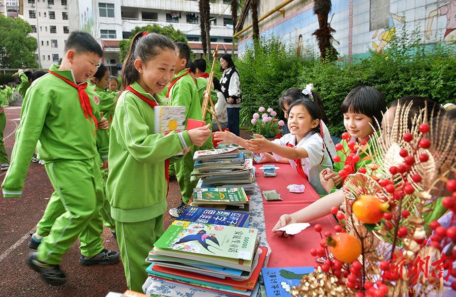 4月29日,学生在淘书交易。当天,吉首市谷韵民族小学举行“好书趣流转·阅读伴成长”校园图书跳蚤活动。学生们通过图书交易、阅读分享等趣味互动,体验知识分享的乐趣,营造了浓厚的校园书香氛围。 姚方 陈红艳 摄影报道(湖南图片库)