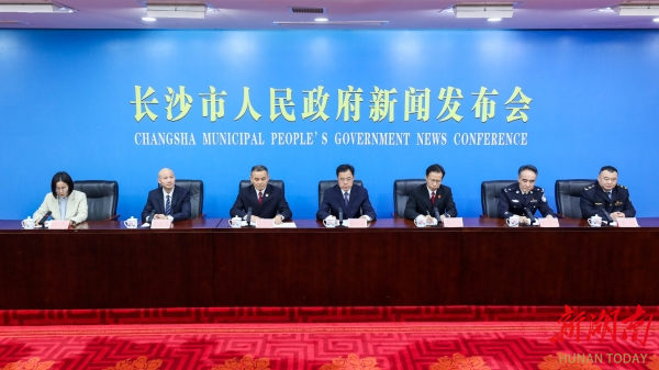 4月23日,长沙市知识产权局会同市中级人民法院、市检察院和市公安局、市司法局、市市场监管局联合召开新闻发布会。 图片由长沙市知识产权局提供