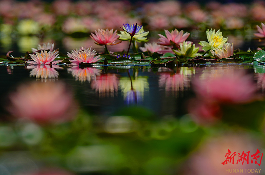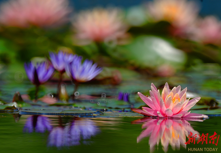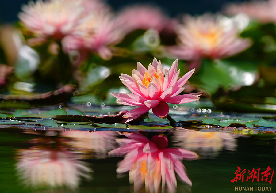 4月30日,暮春时节,南华大学校园池塘内,朵朵睡莲在阳光的映照下悄然绽放,勾勒出一幅朦胧梦幻的春日画卷,尽显灵动与诗意。李翊萌 曹正平 摄影报道(湖南图片库)