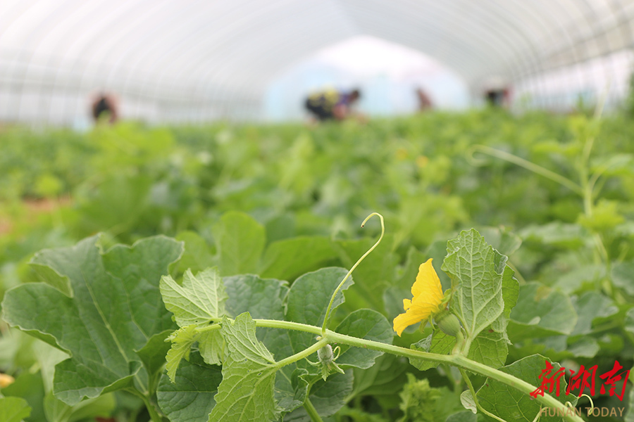 4月29日,宁远县天堂镇大阳洞村香瓜种植大棚,农民正抢抓农时进行人工授粉、掐蔓等精细化管理作业。近年来,该县通过“合作社+基地+农户”模式,积极引导农民发展设施农业和特色果蔬种植,促进农民增收致富。李萍 摄(湖南图片库)